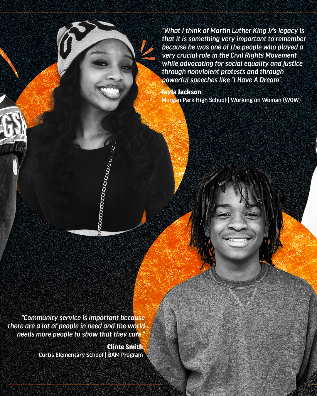For Martin Luther King Jr. Day, I was responsible for designing a carousel of images for social media. These images feature quotes reflecting on Martin Luther King Jr.'s legacy from Bears players Jaylon Johnson and Gervon Dexter Sr. along with students from local elementary and high schools.